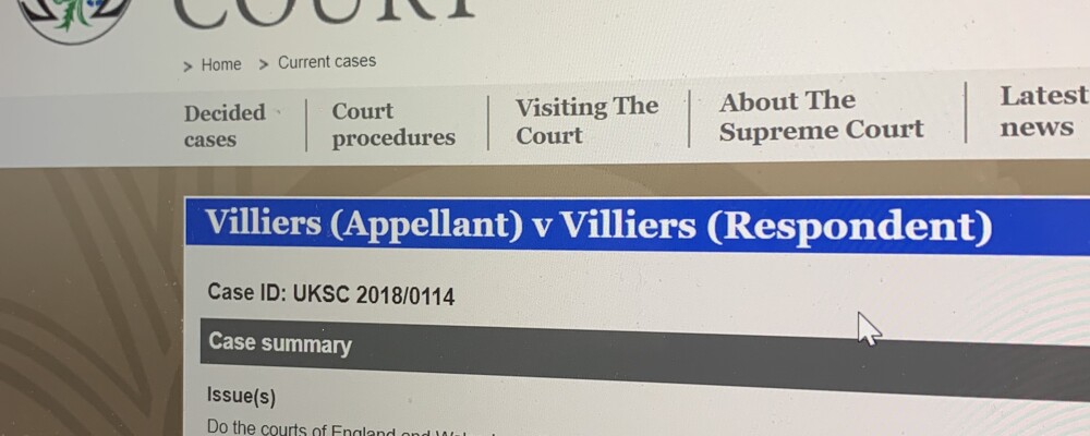 The English court at first instance made orders in Mrs Villiers’ favour- for monthly payments and payments in respect of a legal fees allowance order. The Court of Appeal rejected Mr Villiers’ appeal and the Supreme Court have now rejected his further appeal. The Scottish proceedings have been sisted (repeatedly) from the outset.