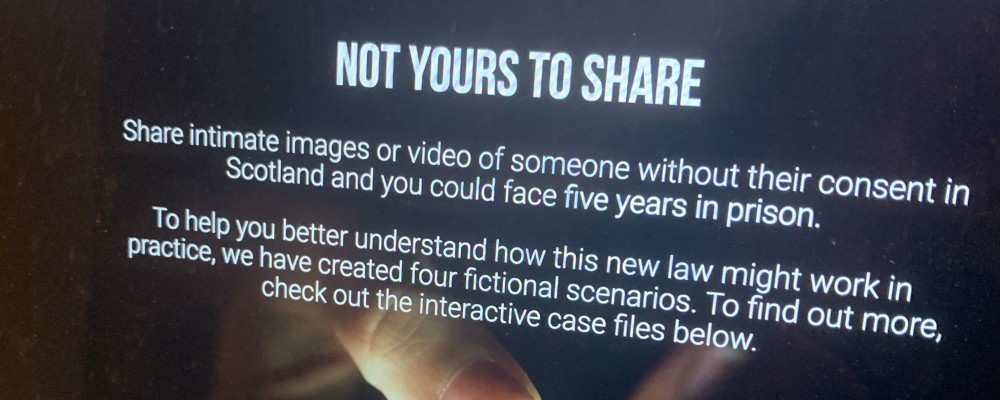 If you have been subject to any threats to disclose intimate material, it is important to know that those threats are criminal. If you find yourself in that situation you can contact the police who are experienced in receiving such calls and should be well placed to help. The Scottish Government also have a great website- Not yours to share- which has some case studies, shows how the Police deal with these cases and provides links to organisations who can support you.